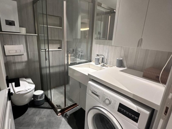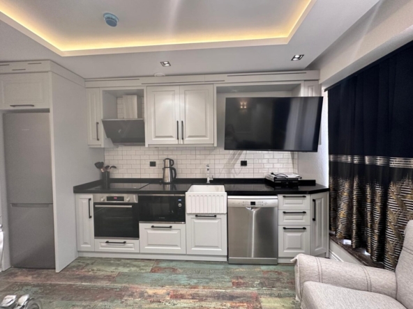 This fully furnished 2-bed apartment in central Fethiye is a great investment in a fabulous location, just moments from the harbourfront and town square. It’s a modern 55 m² single-level apartment in a secure block with a lift, located above high-end stores, cafes, and boutiques, so all the action is right on the doorstep.