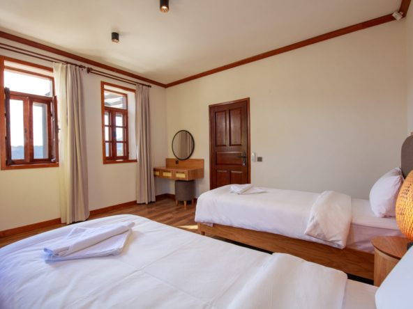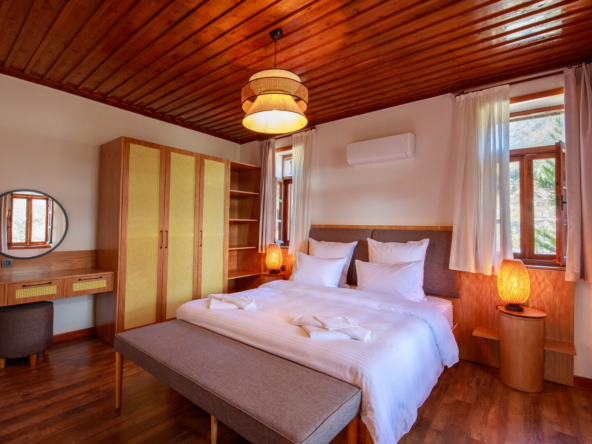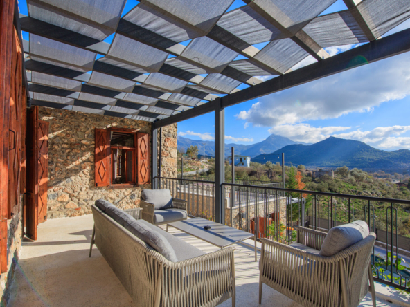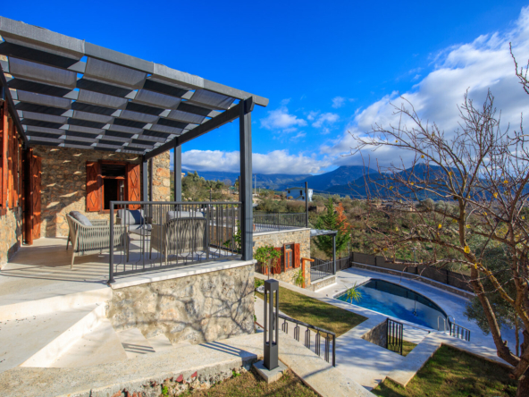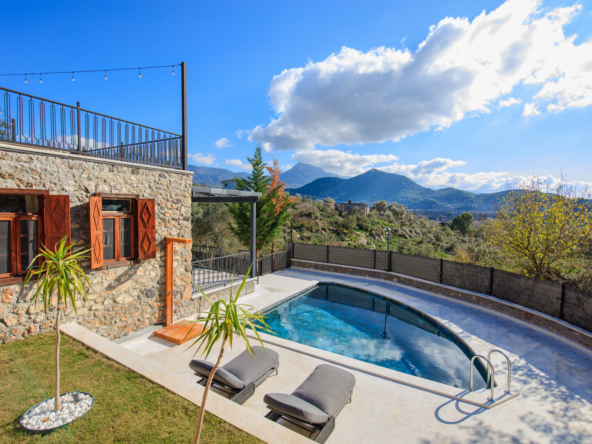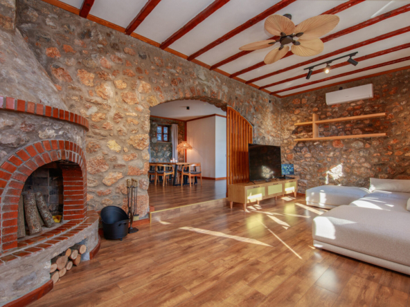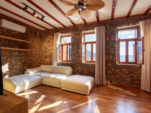 These unique, fully furnished, renovated stone houses in Kayakoy are a fabulous investment. Sitting on a generous elevated plot with a feature pool and terraced grounds, they enjoy stunning views over the mountains, pine forest, and the famous historic village. Tastefully designed as two single-storey, 2-bed, 2-bathroom residences, they blend seamlessly into Kayakoy’s landscape and old Greek stone houses, making this an attractive, ready-to-use purchase for buyers seeking a tranquil home, a holiday retreat, or a buy-to-let investment in one of Fethiye’s most desirable and historic locations.