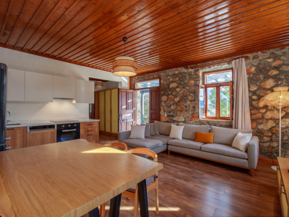 These renovated stone houses in Kayakoy are in a beautiful location, enjoying views over the pine forests, farmland, and centuries-old Greek stone houses. Kayakoy is a fairly traditional village, celebrated for its cultural heritage, as it was a former Greek town with the ruins of schools, churches, and homes, now protected as an outdoor museum, popular with tourists year-round. These villas are within easy reach of scenic walking trails, boutique restaurants, and the village centre. They are also a 15-minute drive from Fethiye and Hisaronu, and a 20-minute drive from Ölüdeniz and the Blue Lagoon.