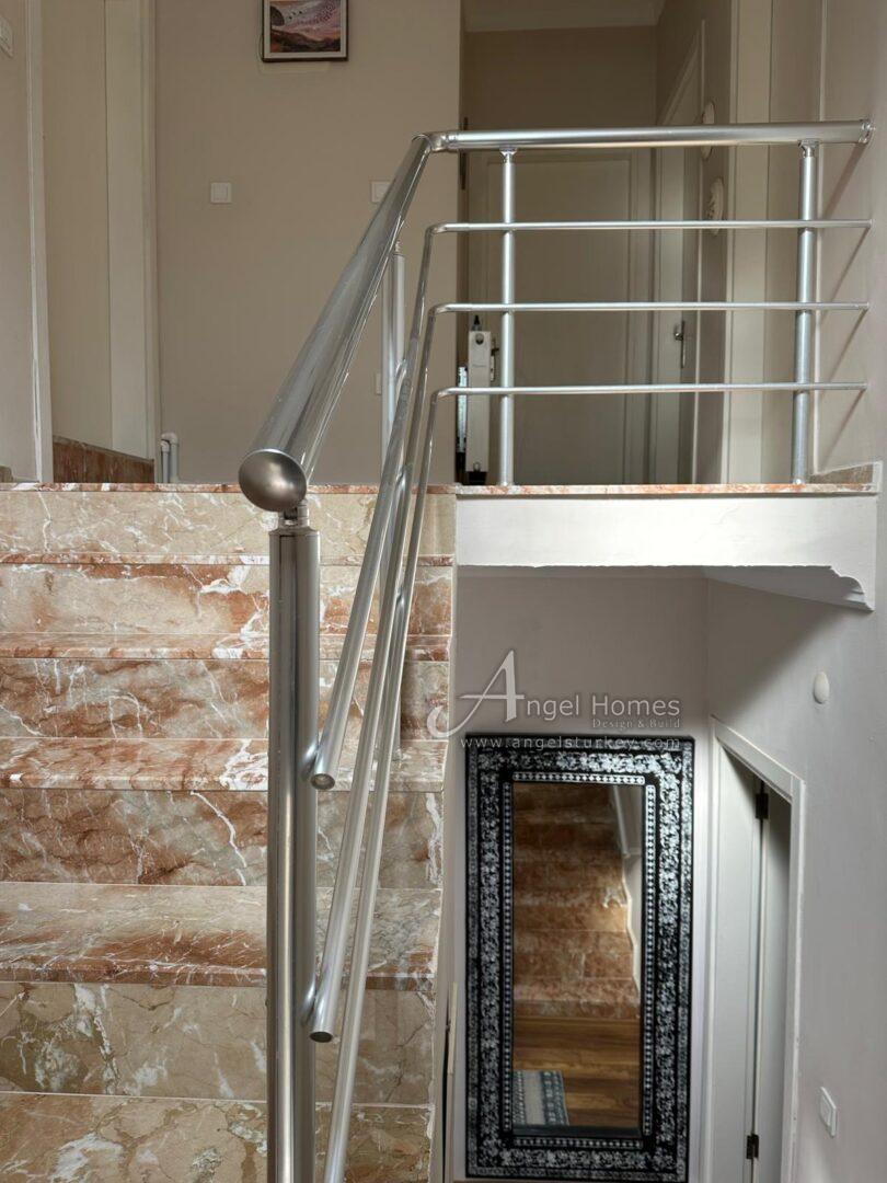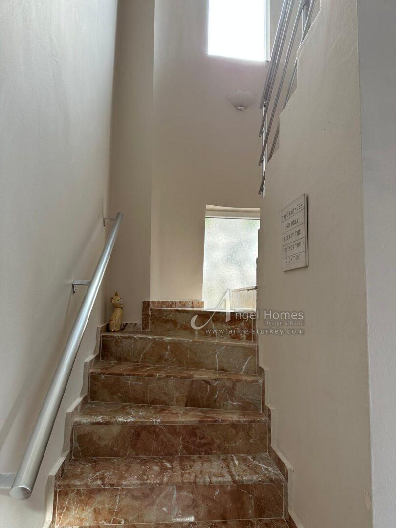 Marble stairs lead to the upper floor. Here you will find three bedrooms: two doubles and one twin.
