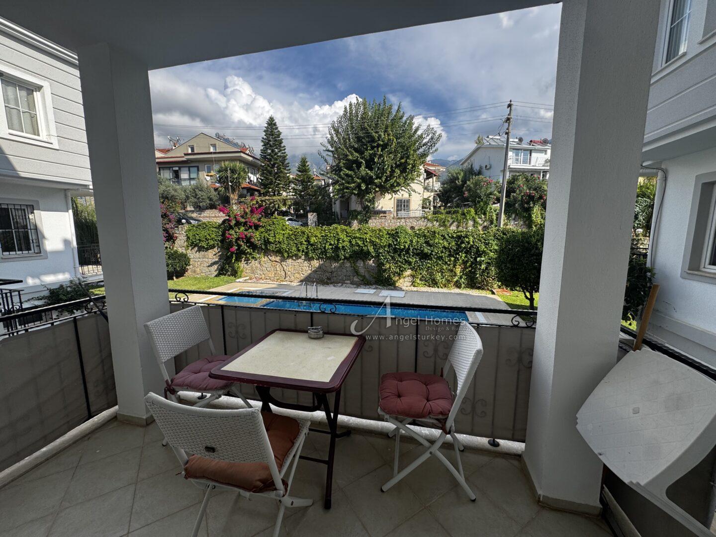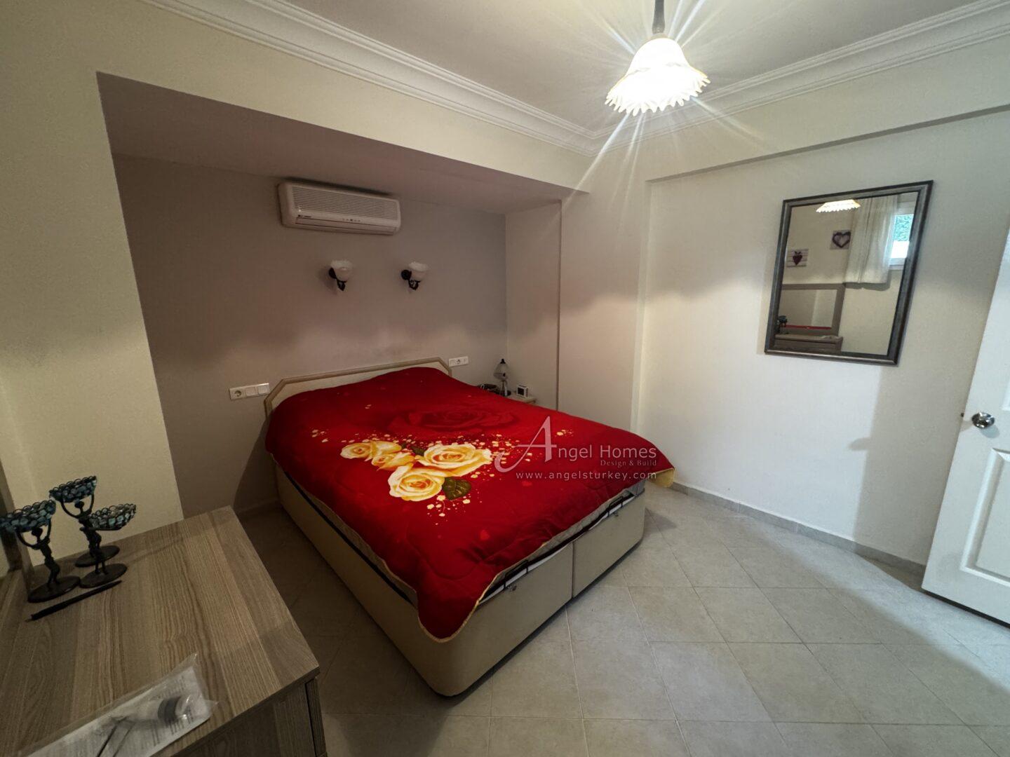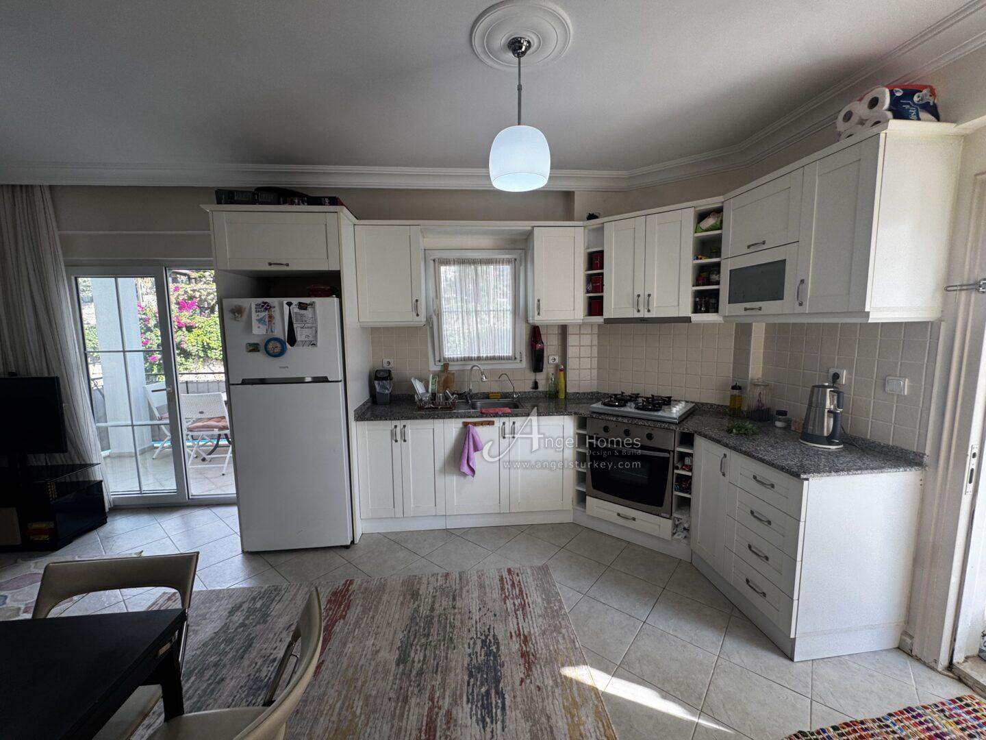 This spacious 3-bed duplex apartment in Hisaronu is in fabulous location, within a short walk from the Angel Homes office, lots of shops, bars, and amenities. It’s a furnished reverse duplex apartment, spread over the lower two floors of a small, well-maintained block with a pool and sun terraces. The apartment features a spacious interior with an open-plan living area, a balcony overlooking the pool and mountains, three bedrooms, and two bathrooms. This property is an excellent choice if you are looking for a spacious, key-ready holiday home at a good price that’s not far from the action. Get in touch to arrange a viewing.