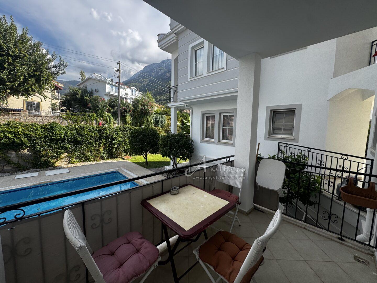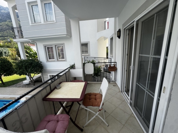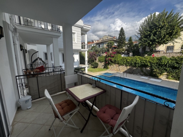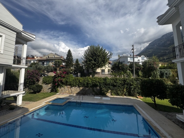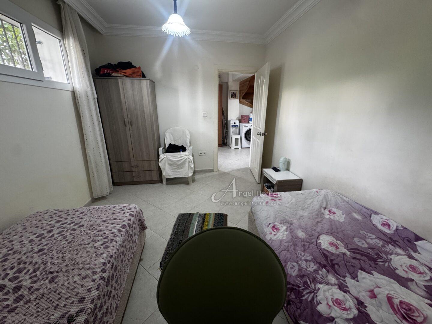 This spacious 3-bed duplex apartment in Hisaronu is in fabulous location, within a short walk from the Angel Homes office, lots of shops, bars, and amenities. It’s a furnished reverse duplex apartment, spread over the lower two floors of a small, well-maintained block with a pool and sun terraces. The apartment features a spacious interior with an open-plan living area, a balcony overlooking the pool and mountains, three bedrooms, and two bathrooms. This property is an excellent choice if you are looking for a spacious, key-ready holiday home at a good price that’s not far from the action. Get in touch to arrange a viewing.
