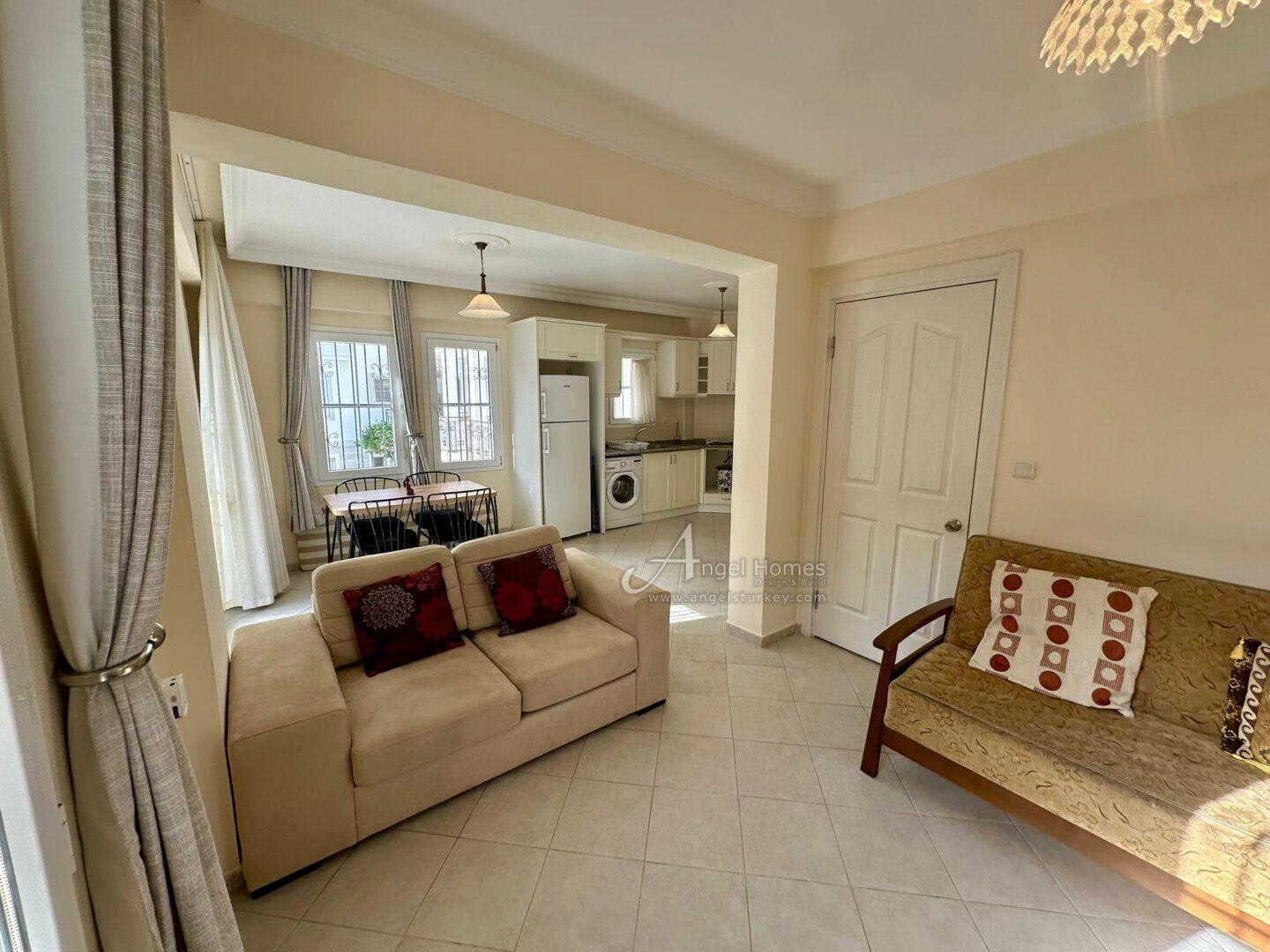 For more info or to arrange a viewing on this furnished 3-bed reverse duplex in Hisaronu, please CONTACT ANGEL HOMES.