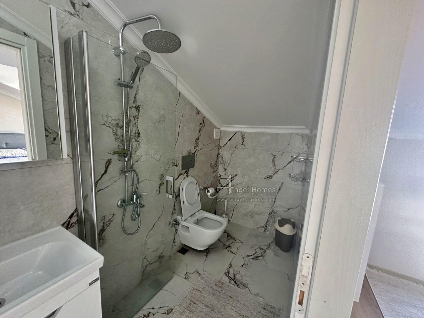 This bright and modern semi-detached villa in Fethiye has a bright feel and excellent ceiling height throughout.