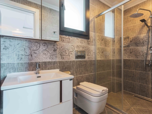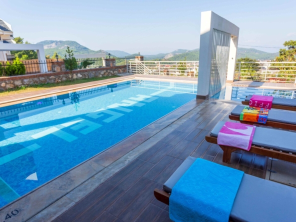 The villa is within a small collection of similar private villas, tucked in a quiet, elevated position, enjoying fabulous views across the Ovacık valley towards Hisaronu. With a private 50 m² swimming pool, kids’ pool, landscaped garden, and generous terraces, this property is unlikely to be on the books for long, so call us today to arrange a viewing.