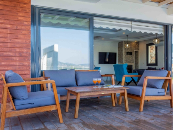 Situated in the upper valley of Ovacik, the villa enjoys a quiet residential setting with open mountain and valley views.