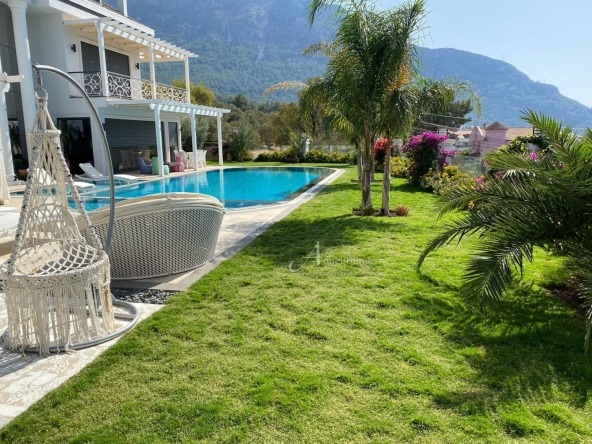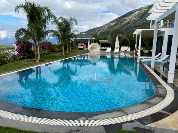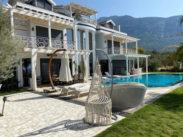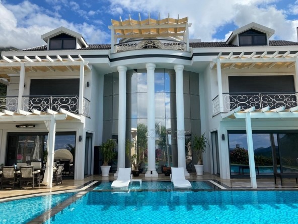 This exceptional 6 bedroom villa with spa facilities and sea views is situated on the mountainside of Ovacik with views over the valley and sea views to Oludeniz beyond.