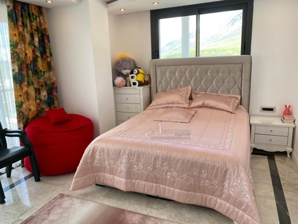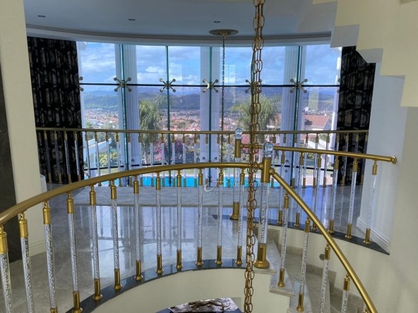 This magnificent mansion style villa is set in 1000 square meters of land nestled in the Ovacik mountains and boasts 4 en suite bedrooms with an open designed kitchen lounge and dining rooms with super sea and mountain views. The further 2 bedrooms are situated on the ground floor of the property.