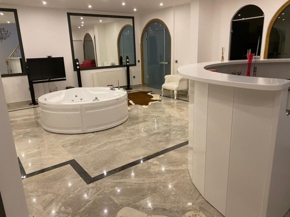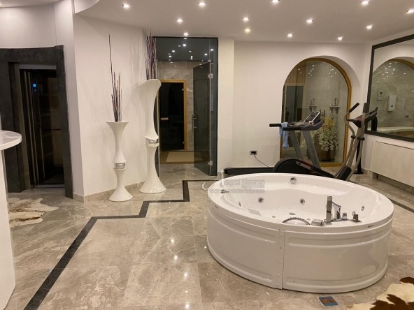 The Ground floor of the property boasts a large spa area with Gym, Jacuzzi, an ottoman style Turkish bath (Hamam), a sauna and a massage room complete with bathroom facilities and shower. The Gym area also has an impressive juice bar. This floor also hosts a further 2 bedrooms, one is a flat complete with kitchen, 1 bedroom and a bathroom and is ideal for guests or maids quarters, the other bedroom is large with wall to wall fitted wardrobes with mirrors. The garage is situated also on this floor and is fit for 3 cars. Also on the ground floor who may find a cinema room, laundry room and a technical room that operates all the smart systems.