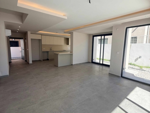 The ground floor features a spacious open-plan kitchen, living and dining area, ideal for modern living and entertaining. There is also a cloakroom and laundry area. This floor has direct access to the terrace, garden, and private swimming pool.