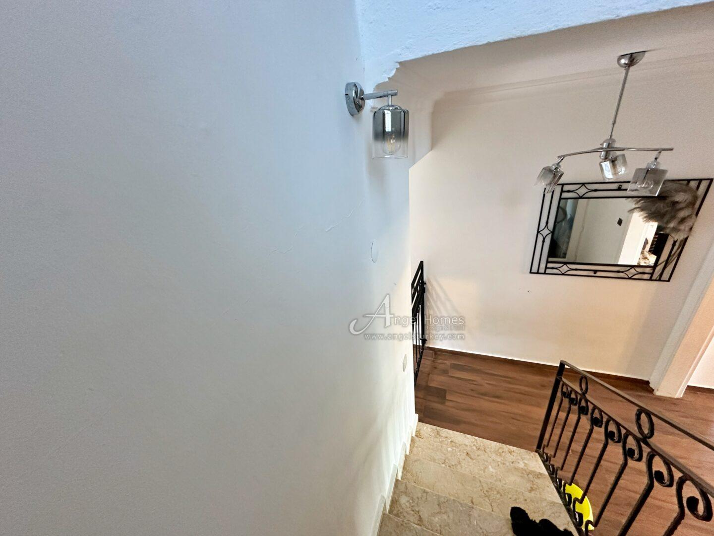 The upper floor accommodates three comfortable bedrooms, all furnished. Two of the bedrooms feature private balconies, offering pleasant views of the garden and surrounding mountains and forest. There is also a modern, renovated bathroom on this level.