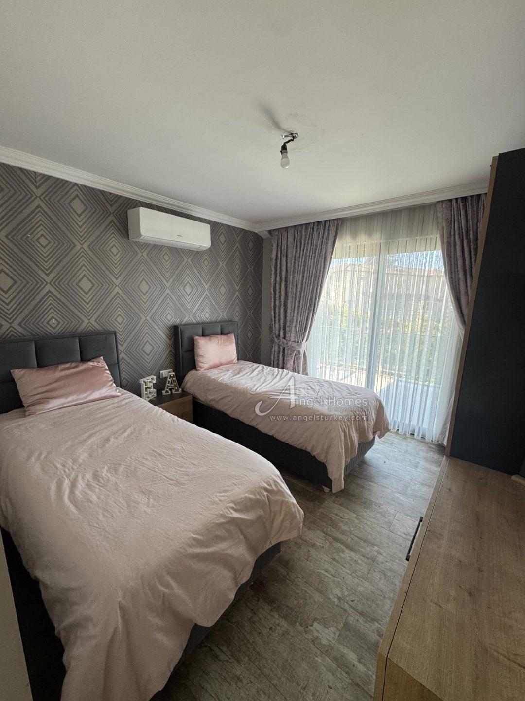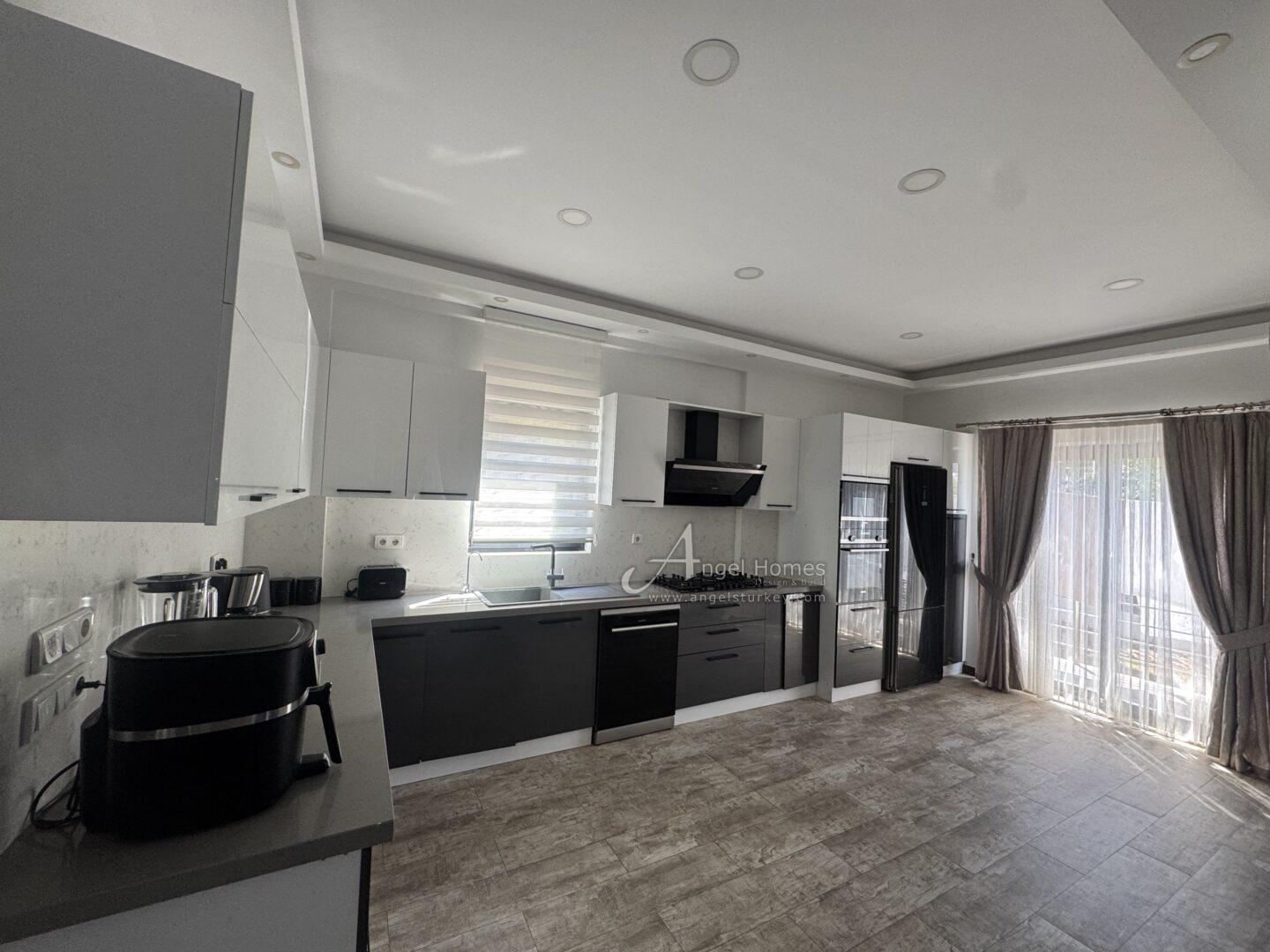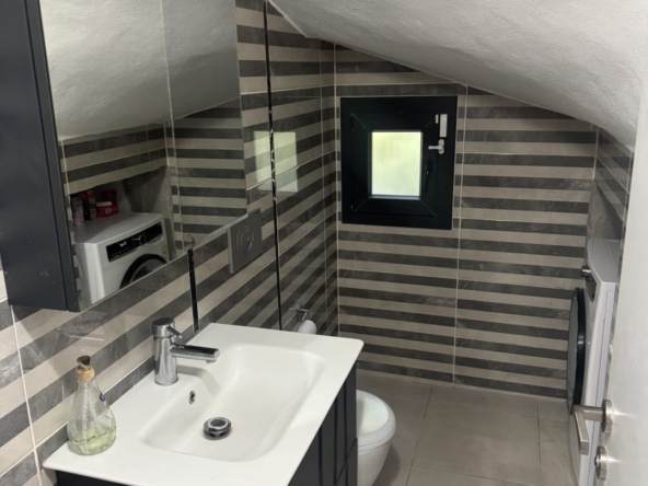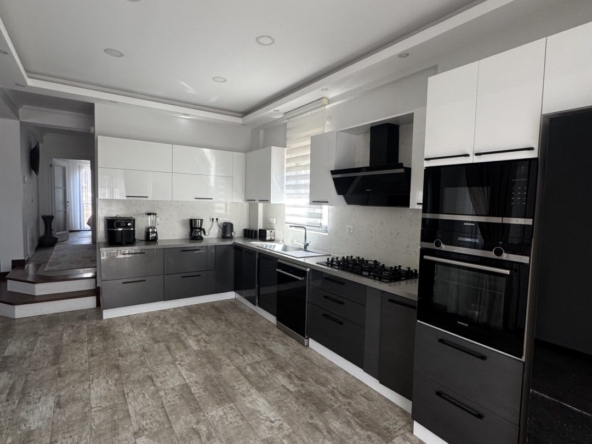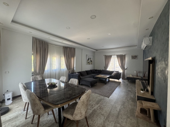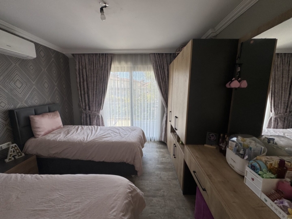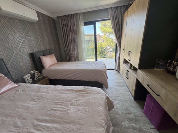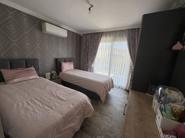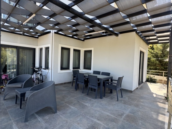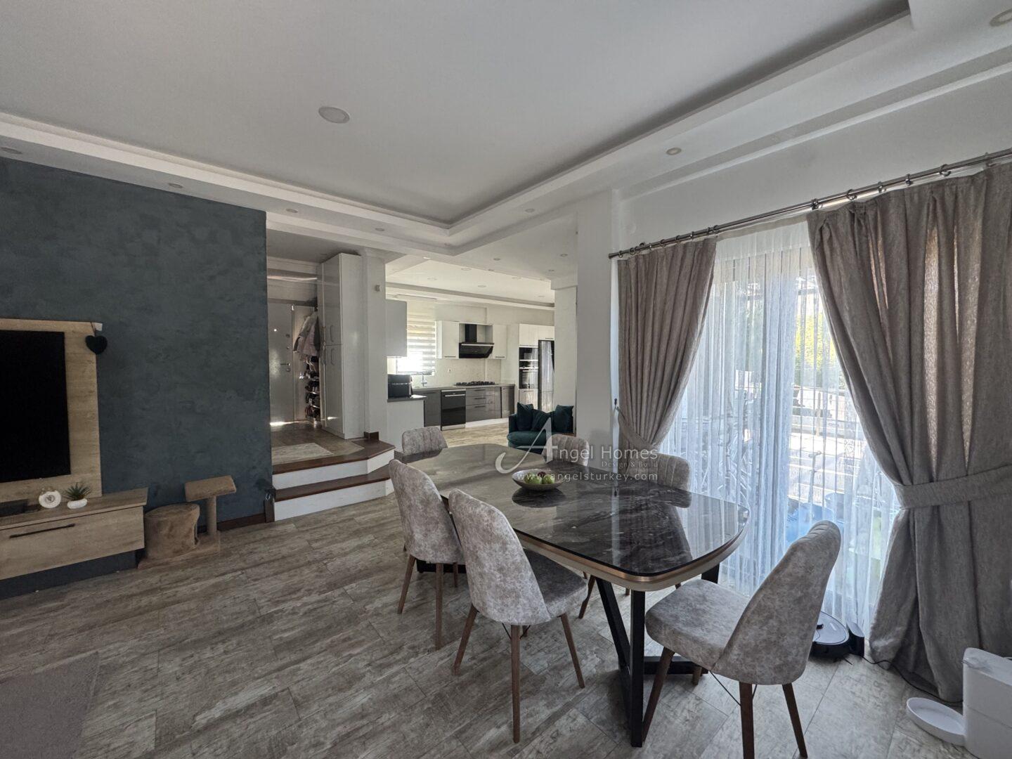 This well-maintained 5-bed villa in Ovacik has 220m² of interior space over three floors and is to be sold mostly furnished, but for a heat pump, TV, and personal items. The villa features air conditioning in every bedroom and the living room, a CCTV security system, advanced alarm sensors, and the infrastructure for underfloor heating. Solar water heating and immersion ensure year-round warmth and efficiency.