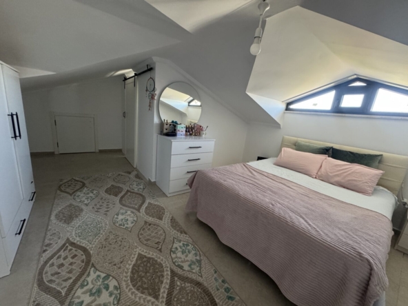 The fifth bedroom is found in the attic, along with large storage spaces. This bedroom has an ensuite bathroom, which is yet to be completed.