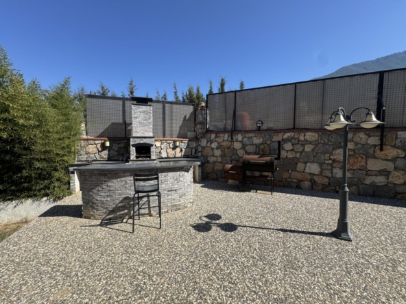 The grounds of this 5-bed villa in Ovacik are a real highlight. Here, you find a large private swimming pool with sunbathing terraces, a well-kept mature garden, a large stone BBQ area with bar that’s ideal for entertaining, and parking.