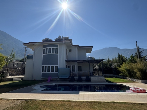 This spacious 5-bed villa in Ovacık is in the beautiful lower valley, within walking distance of the theme waterpark and transport links to Hisaronu, Oludeniz beach, and the town of Fethiye. It’s an attractive private property on a generous 753m² private plot with a large swimming pool, garden, BBQ area with a bar, and lots of sunbathing and entertaining space. The villas’ 220m² interior lies over three levels, and it comes mostly furnished to an excellent standard. Additional property highlights include underfloor heating infrastructure, CCTV, an alarm system, and air conditioning in all rooms. This is the ideal investment property that would attract a rental premium; alternatively, it is an excellent choice as a family home or holiday home.