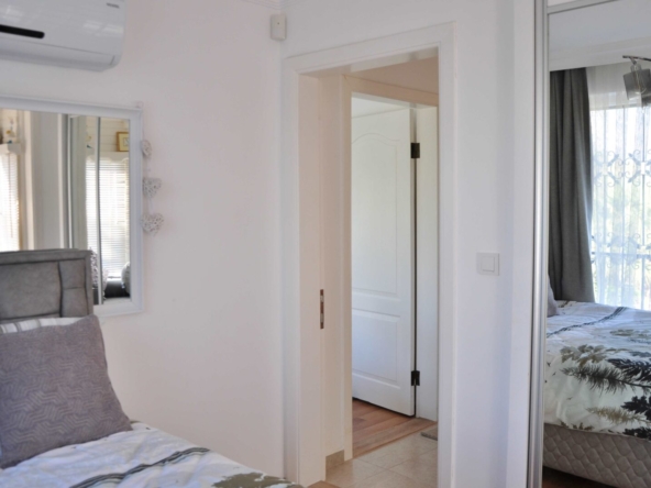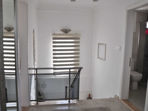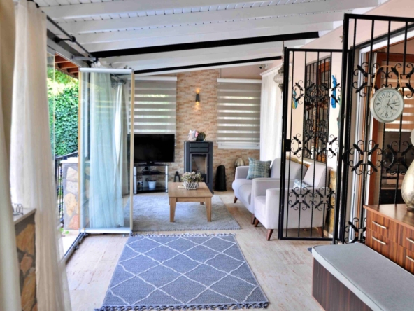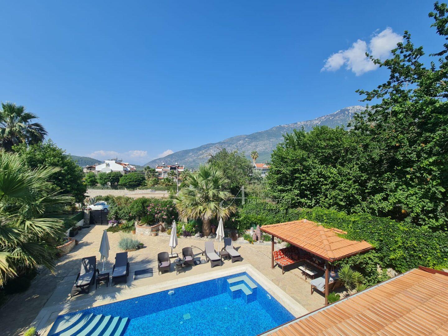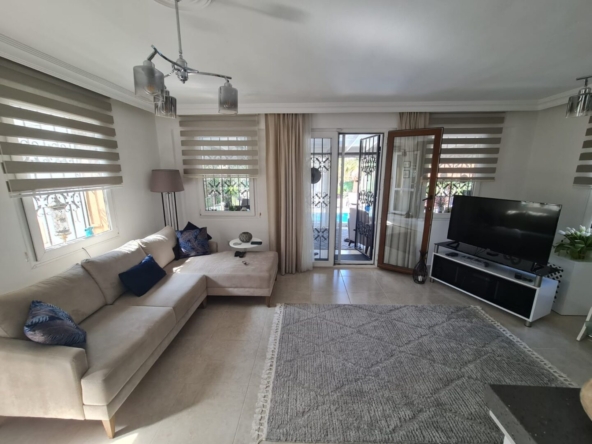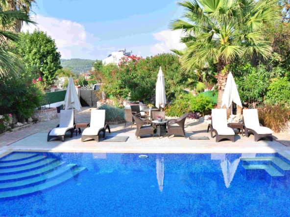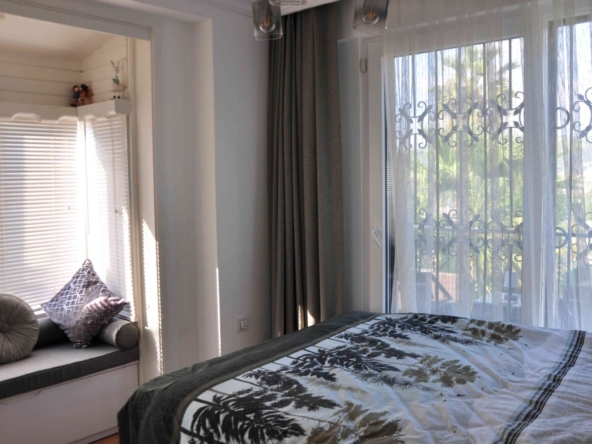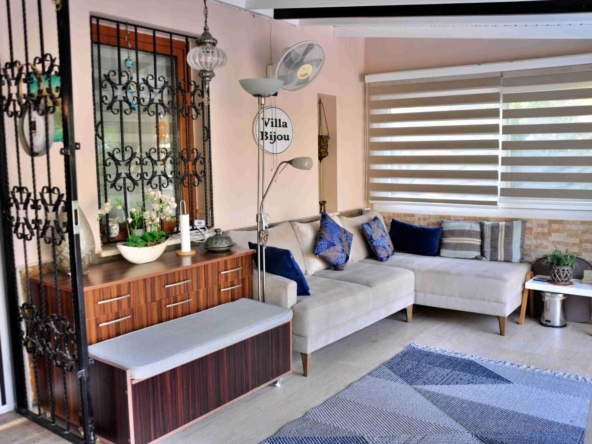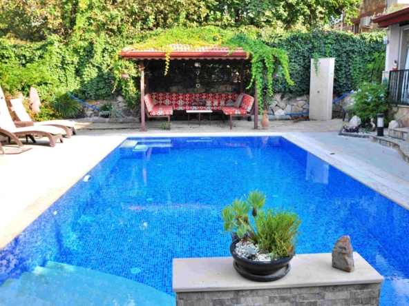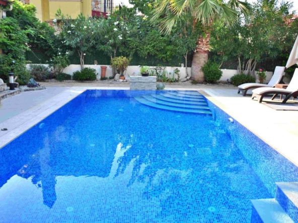 This villa has been modernised and sits in a fairly central location, just a couple of minutes’ walk from the transport links, and the central Hisaronu strip. The villa is built on a 500m2 walled and gated plot with a beautiful pool with steps rather than rails, a garden and sun terrace area, an storage space behind the house. It is of a duplex design with a 150m2 interior, and it is offered for sale with quality furnishings and white goods as seen.