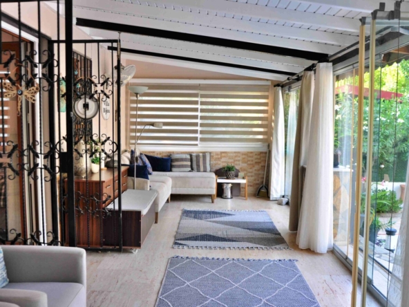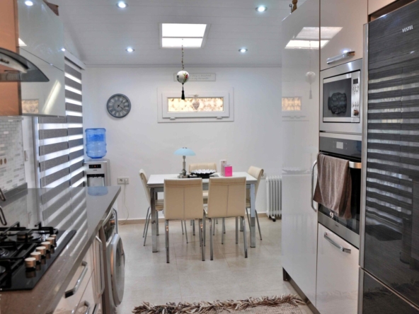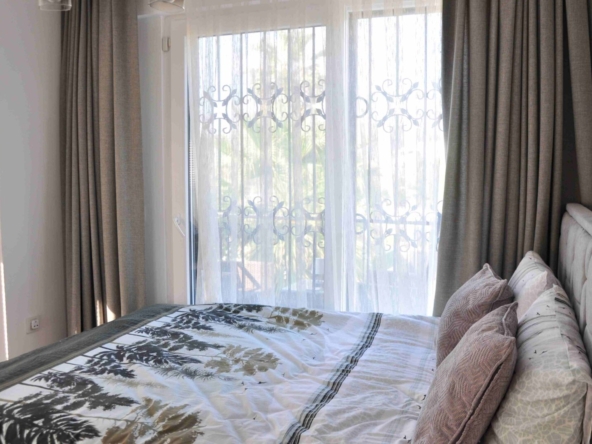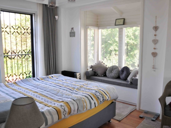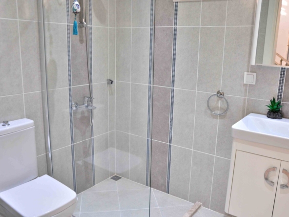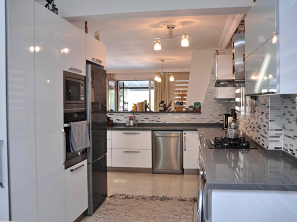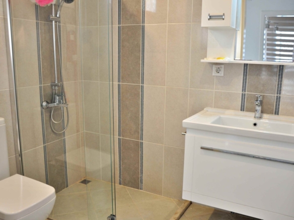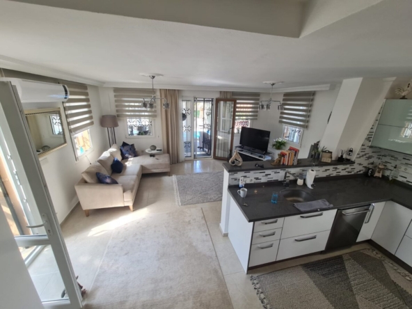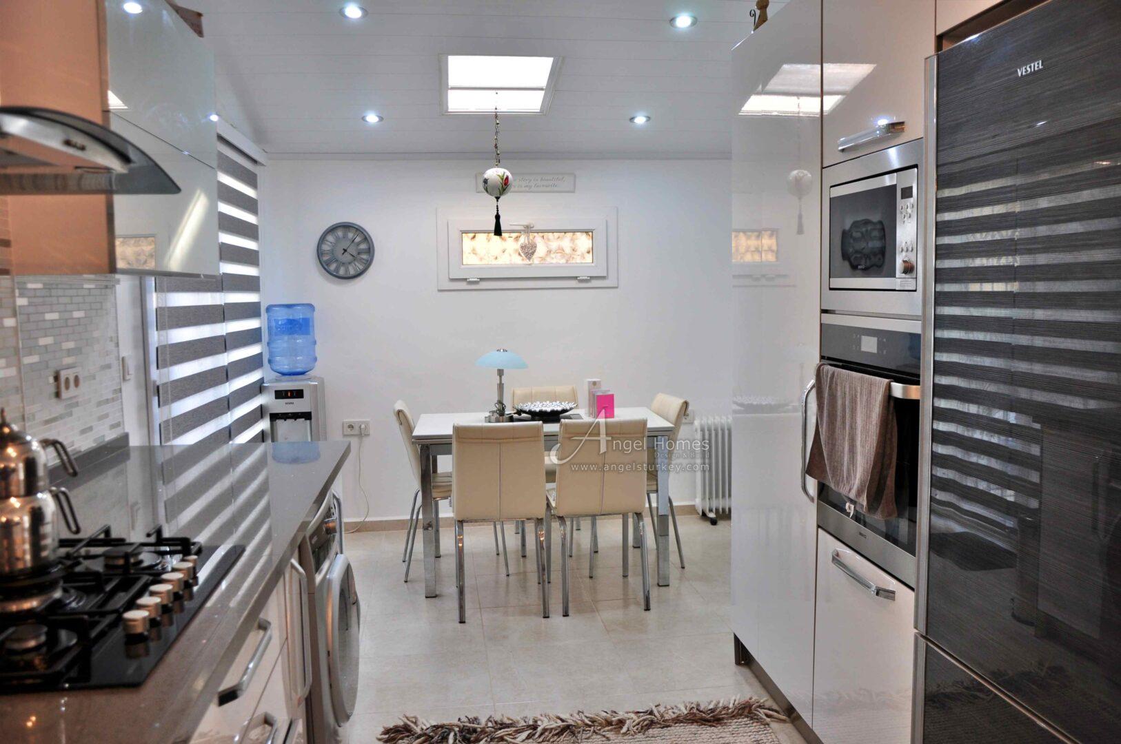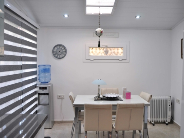 This villa has been modernised and sits in a fairly central location, just a couple of minutes’ walk from the transport links, and the central Hisaronu strip. The villa is built on a 500m2 walled and gated plot with a beautiful pool with steps rather than rails, a garden and sun terrace area, an storage space behind the house. It is of a duplex design with a 150m2 interior, and it is offered for sale with quality furnishings and white goods as seen.
