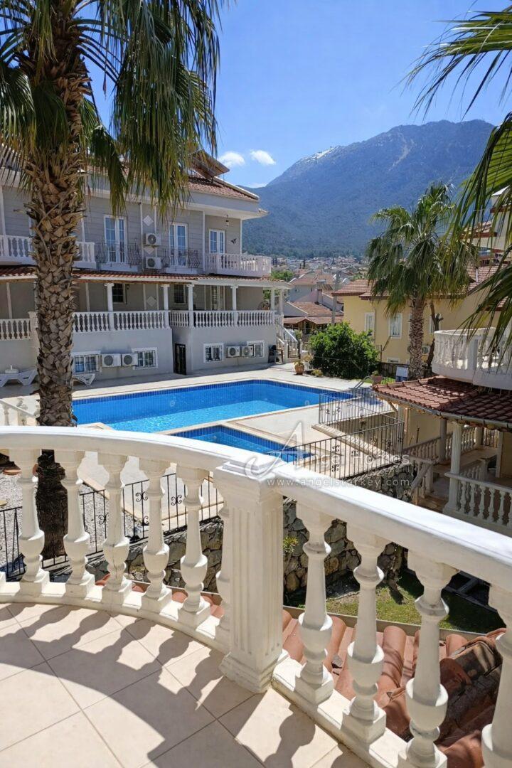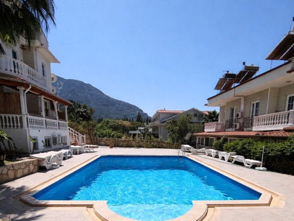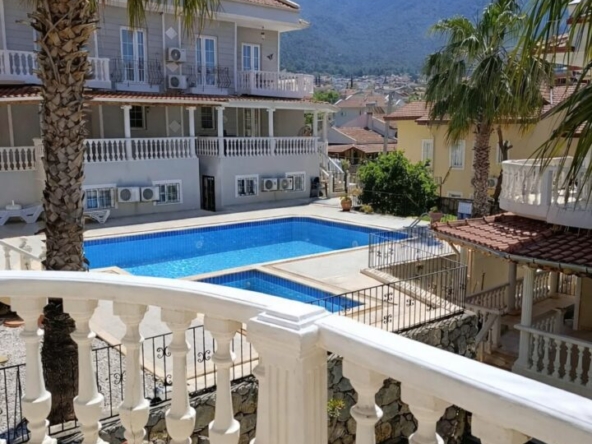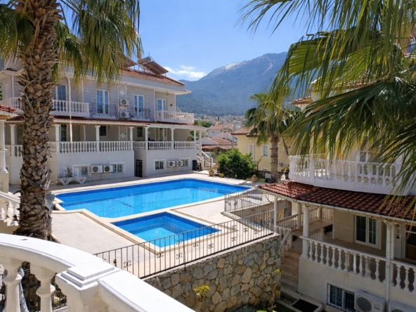 This key-ready 2-bed holiday home in Ovacik is in a fabulous location, just off the main road taking you from Fethiye to Hisaronu and Oludeniz Beach. It’s a fully furnished upper duplex apartment on a popular, well-established site with a large shared pool, lots of sunbathing space, and a children’s pool. With a spacious interior over two floors, a balcony overlooking the pool, and shops, cafés, restaurants, and amenities within easy walking distance, it’s a great choice if you are looking to spend quality time and summers in the area. Call us to arrange a viewing.