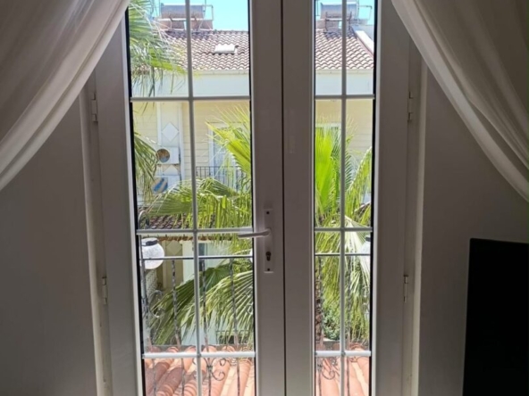 The apartment is arranged over the top two levels of a low-rise block overlooking a central pool and grounds. It has an 80 m² interior and is offered for sale, furnished, excluding personal items.