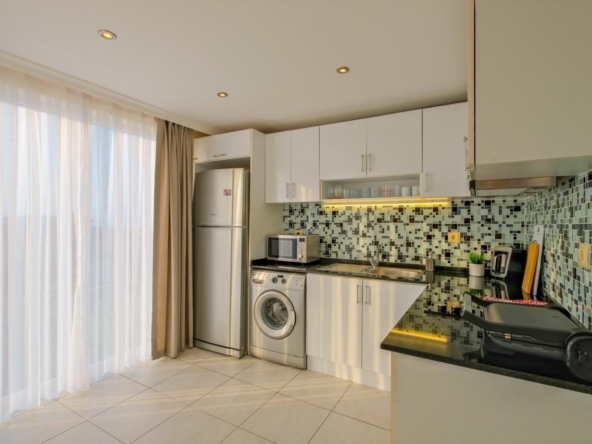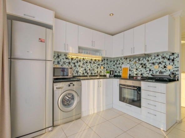 The apartment is part of a popular, professionally maintained complex and is a corner unit. Finished in a clean, contemporary style. It comes fully furnished, including quality furniture, modern kitchen units, bathrooms, appliances, and air conditioning.