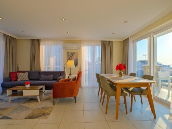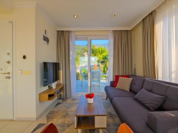 This impressive 2-bed, 2-bathroom duplex apartment in Upper Ovacık is offered for sale fully furnished and lies in one of the area’s most sought-after complexes. Arranged over the lower two floors of a modern, low-rise block, this 100m2 property has all you need to move straight in, and it also comes with a rental history, so it’s a great option as a holiday home or a buy-to-let investment.