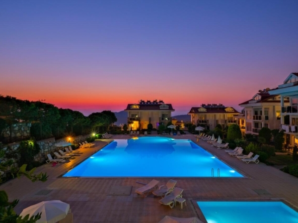 The apartment is located within a secure, gated site built by a well-known developer to a high standard. The complex is known for its spacious apartments, stunning mountain and forest views, and impressive grounds, which feature one of the largest shared swimming pools in the area. Peaceful yet within a few minutes’ drive from Hisaronu resort and the famed Oludeniz beach, this apartment is the ideal choice for lifestyle buyers and investors.