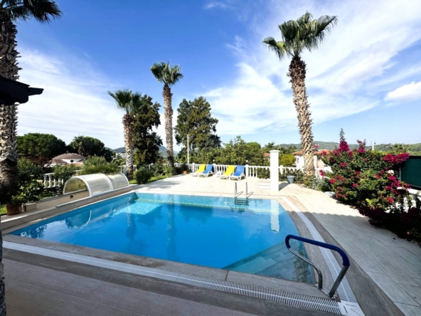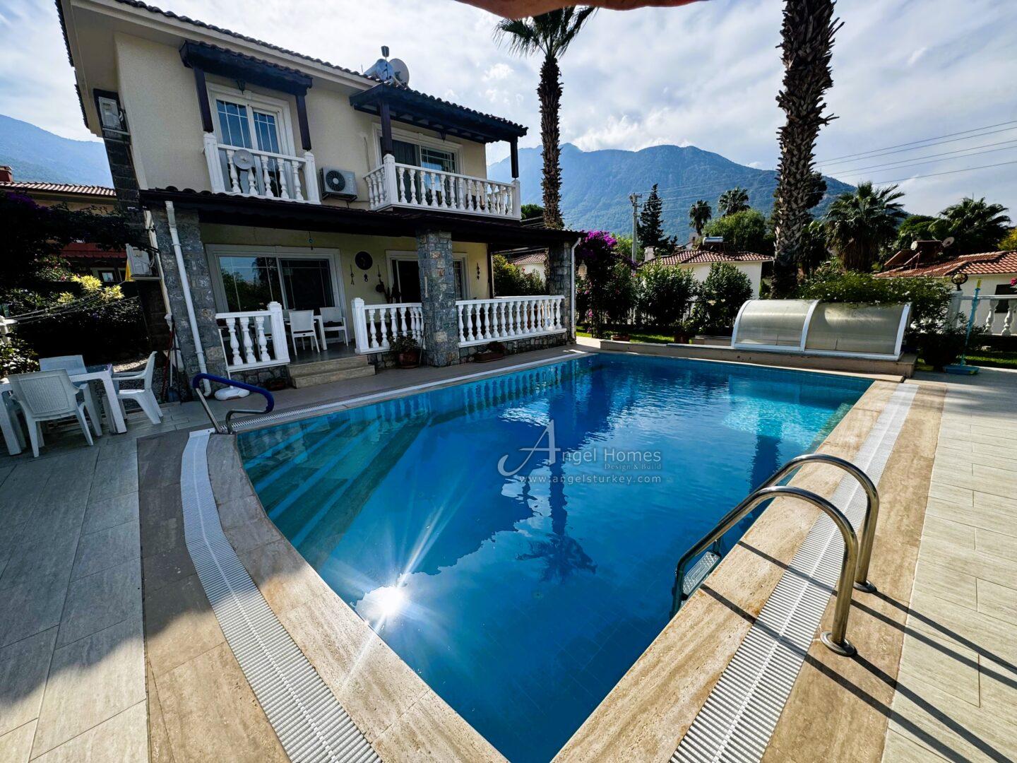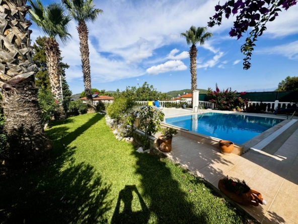 This attractive, key-ready 2-bed villa in Ovacik is ideally located just to the rear of the main road leading from Fethiye to Oludeniz Beach. The villa really has appeal, as it is not only move-in ready but also offered at a great price. The interior flows well, featuring a spacious lounge and kitchen, and 2-bedrooms, 2-bathrooms spread across two floors. The property sits on a generous 500m² plot, featuring a private pool, sun terraces, and a large underground garage, making it the ideal holiday escape or rental property.