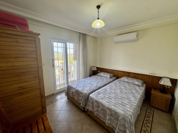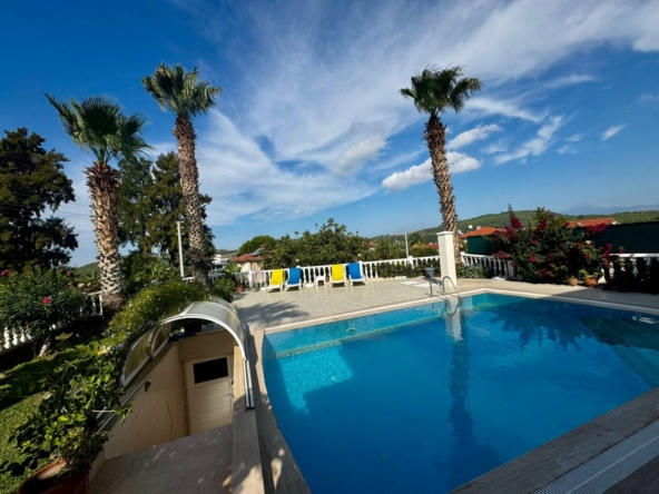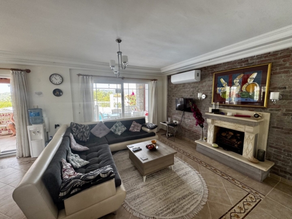 This attractive, key-ready 2-bed villa in Ovacik is ideally located just to the rear of the main road leading from Fethiye to Oludeniz Beach. The villa truly has appeal, as it is not only move-in ready but also offered at a great price. The interior flows well, featuring a 2-bedroom, 2-bathroom design spread across two floors. The property sits on a generous 500m² plot, featuring a private pool, sun terraces, and a large underground garage, making it the ideal holiday escape or rental property.