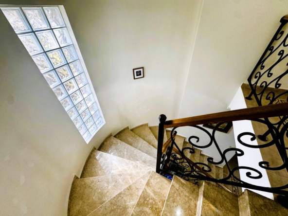 First Floor: On this floor, you find two generous en-suite bedrooms. The twin room includes a Juliet balcony overlooking the pool, while the master double enjoys a larger balcony and an en-suite bathroom with a bathtub – a rare addition in many villas.