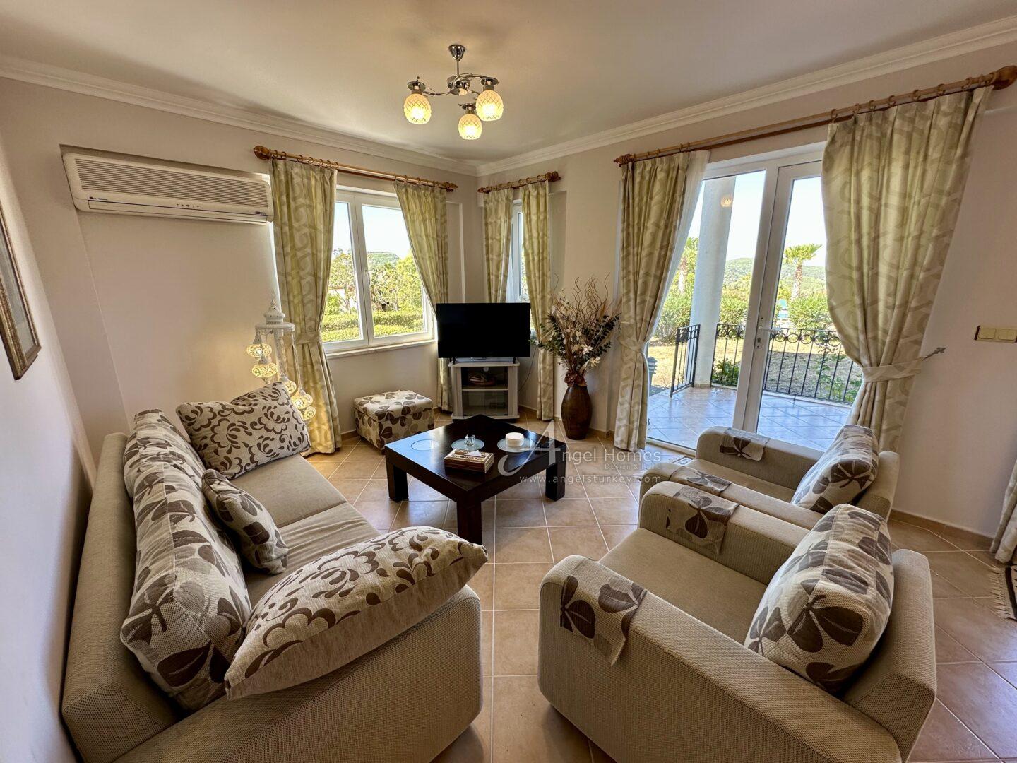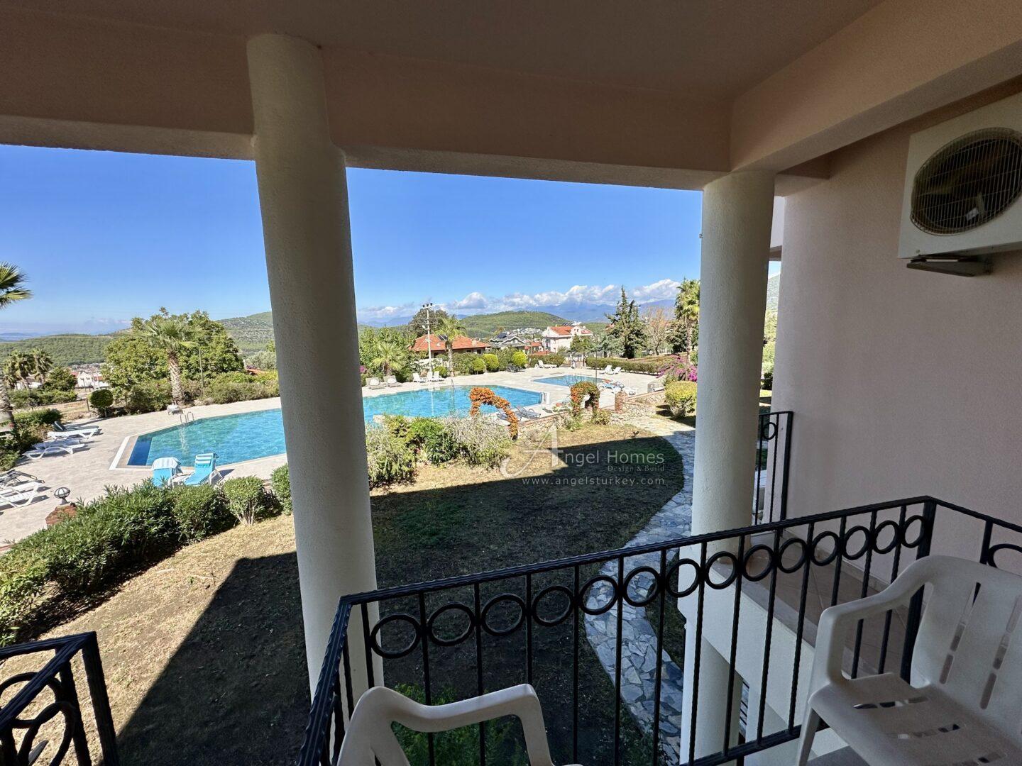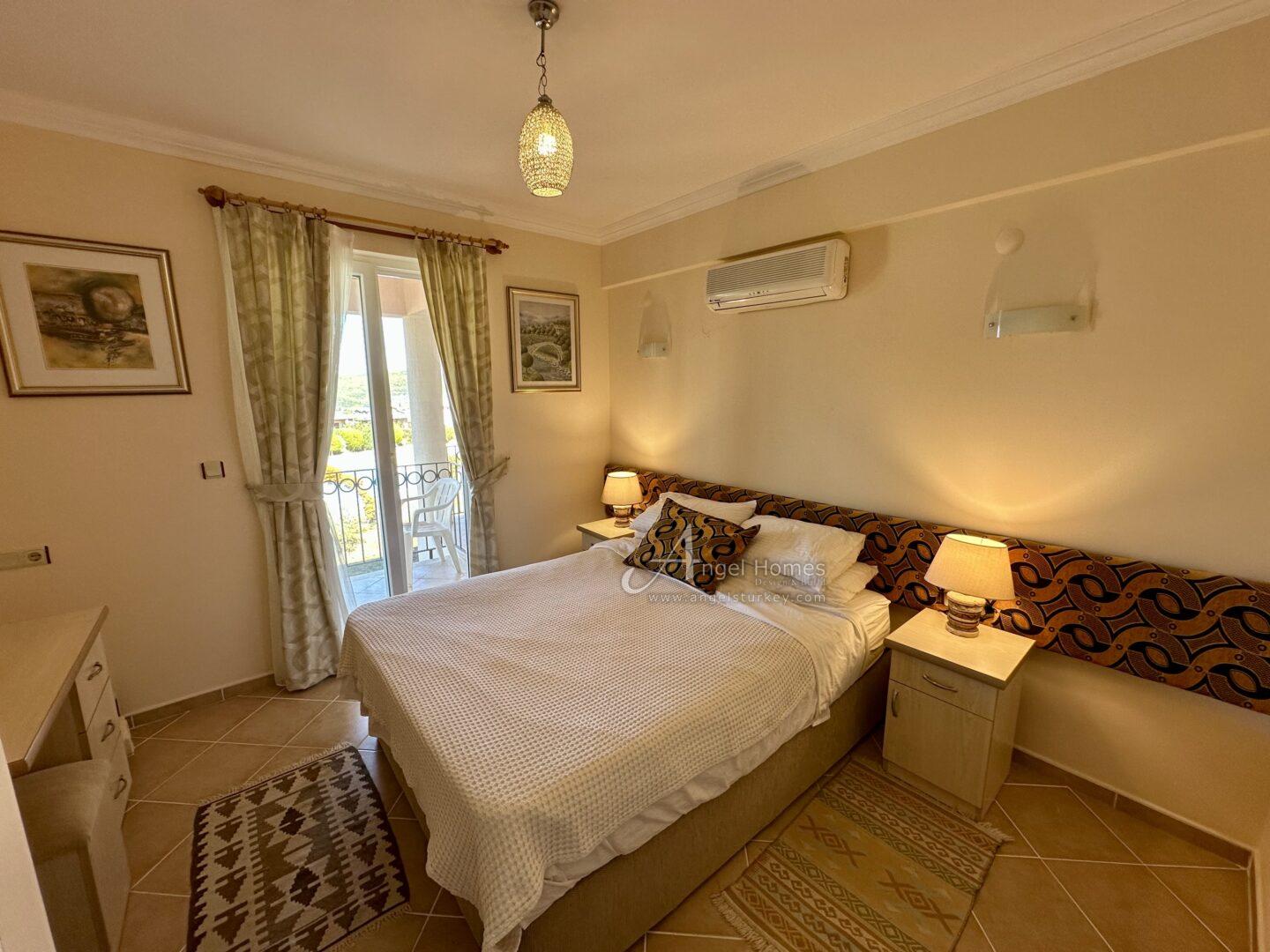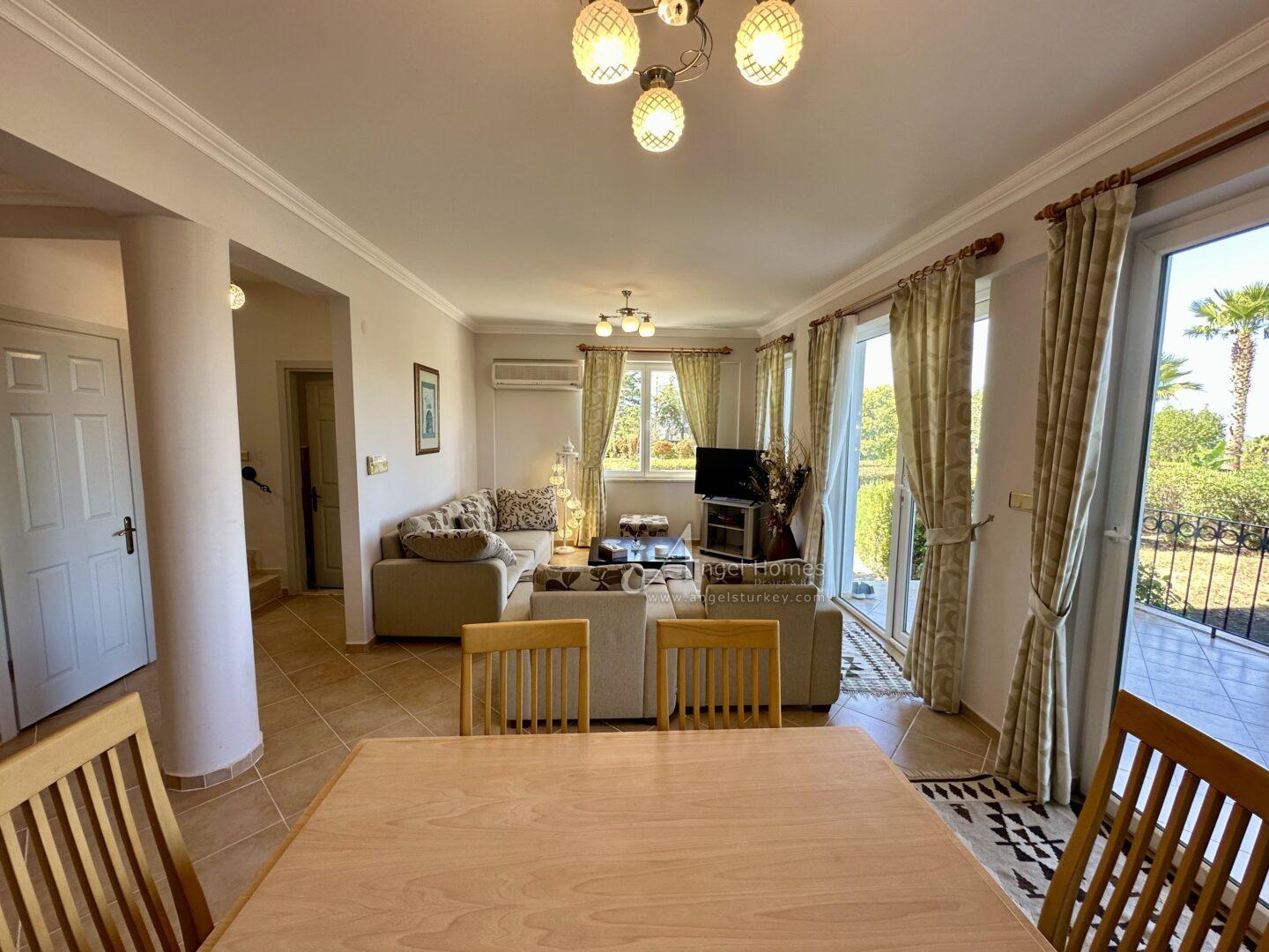 This stylishly furnished 2-bedroom lower duplex apartment for sale in Ovacik is situated in the peaceful Upper Valley, a sought-after area just a 10-minute walk from the restaurants and amenities in Hisaronu, and a 10-minute bus ride from Ölüdeniz Beach and Lagoon. Listed exclusively with Angel Homes, this property is situated in a well-established, gated complex featuring a large shared pool, a children’s pool, and an on-site café/bar. With direct access to the gardens from a spacious dining terrace featuring a built-in BBQ, this well-maintained, key-ready property is ideal for those who love outdoor living – it’s also offered at an excellent price, so contact us today to arrange a viewing.