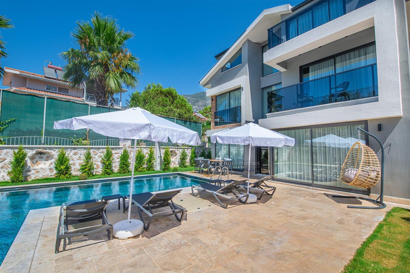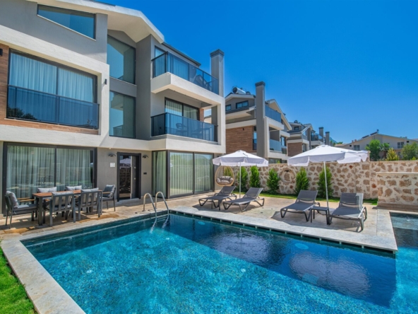 Nestled beautifully into the Ovacik Valley, just a 10-minute drive from Oludeniz lagoon, is this project of 12 luxury new villas. Each each villa is of an attractive 3-bed contemporary design and include quality furnishings and many high-end features like a sauna, jacuzzi, and Turkish Bath. The project is being built by an established developer known for the quality of their builds, and they are ideal as a holiday home or rental investment. In addition, they are also suitable if you wish to reside in the area permanently and apply for Turkish citizenship.