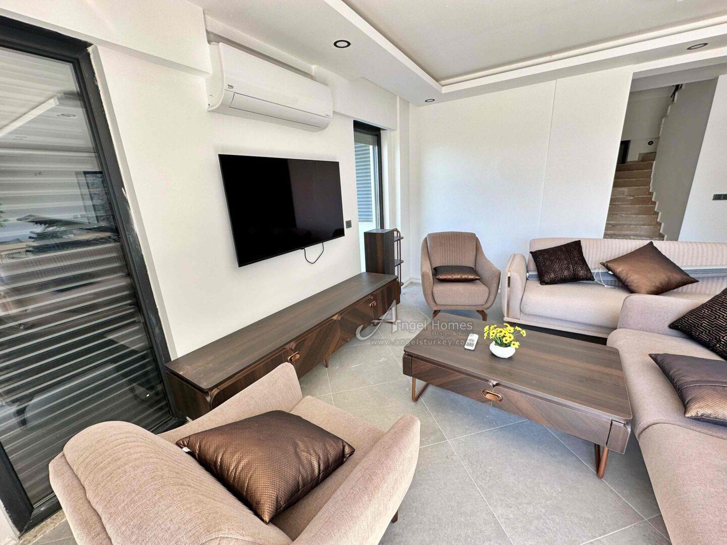 This modern property sits on a 500 m² private plot with a 280 m² interior over three floors. It has been finished to a high standard and comes furnished with all you need to move straight in, allowing for immediate use or rental. With its spacious layout, views, and location just 30 minutes drive from Oludeniz beach and lagoon, it’s a villa well suited as a luxury holiday home or premium rental investment property. Call us for more details.