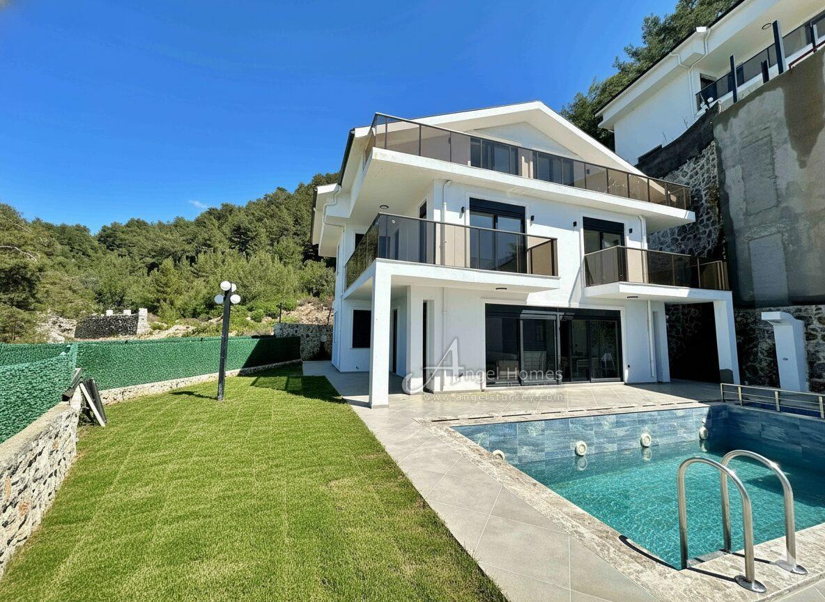 The villa is also close to the Lycian Way, the famous walking trail, with forest and mountain views towards Babadag Mountain to the rear and sea views to the front.
