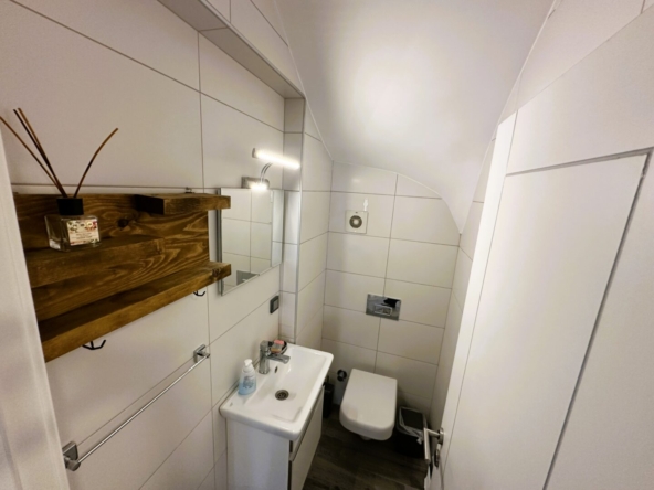 Large doors lead directly to the poolside terrace, the ideal place to relax and entertain. A guest WC is also located on this level.