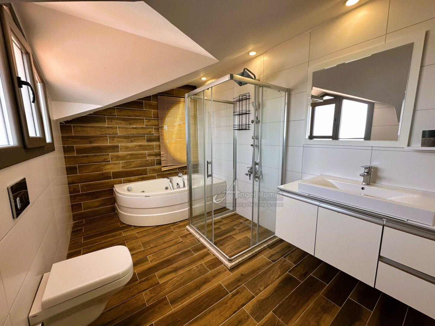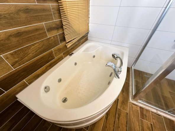 The upper level features a spacious master bedroom with an en-suite bathroom with jacuzzi bath.