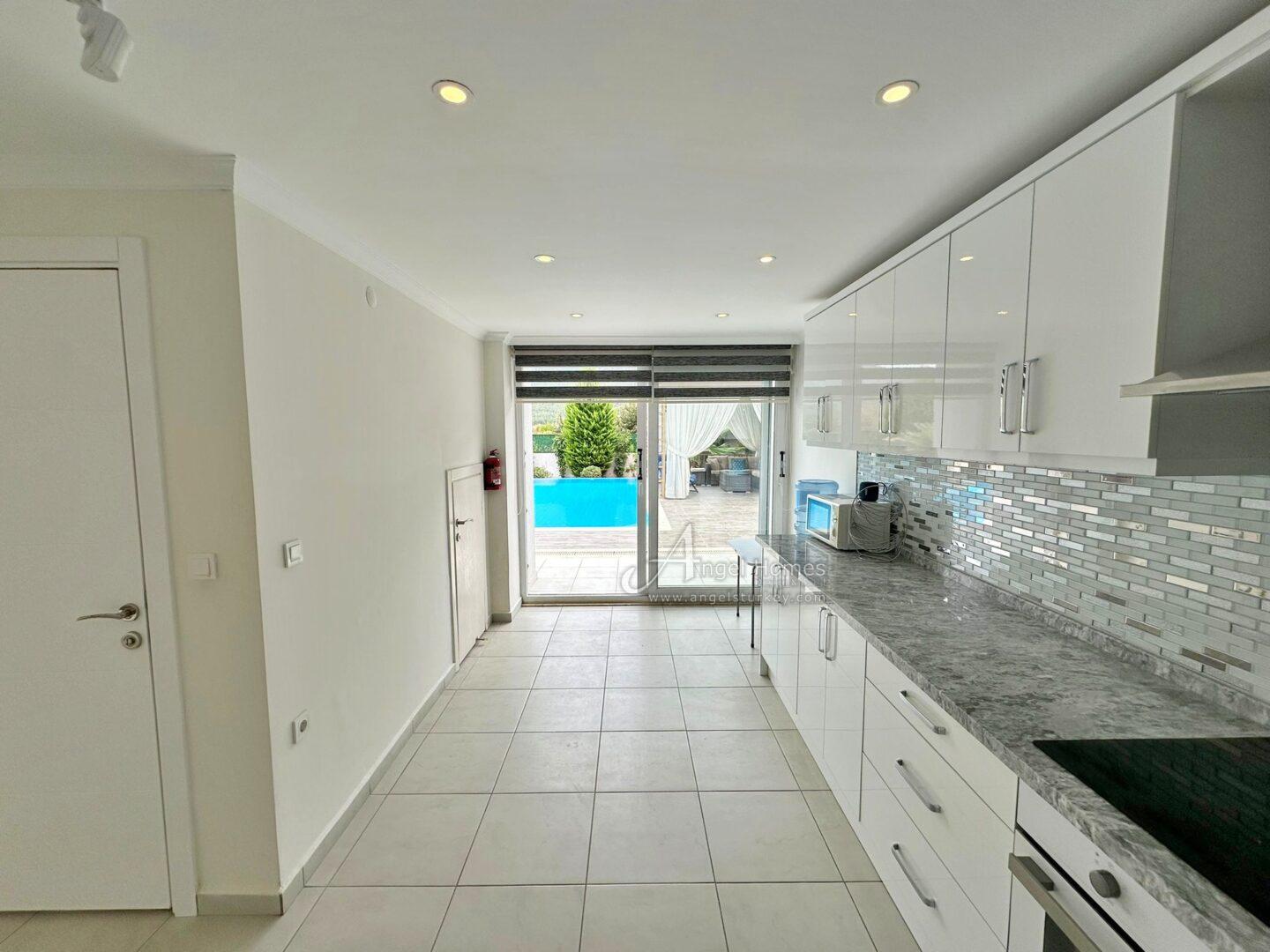 We are delighted to present this modern 4-bedroom villa for sale in Upper Ovacik. Listed exclusively with Angel Homes, this spacious property has a contemporary exterior and offers a large, fully furnished interior with a private pool and landscaped gardens.