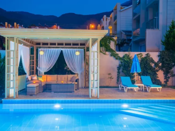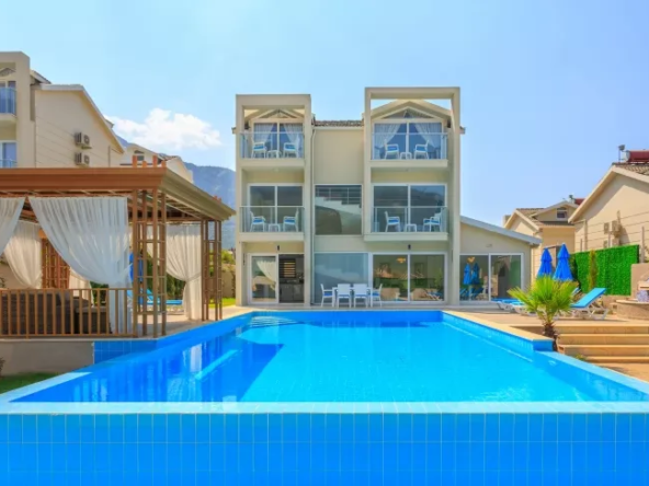 The villa is situated in the desirable Upper Ovacık area. This impressive 3-storey property is set on a 490 m² private plot and enjoys stunning mountain and valley views. Just a short drive from the world-famous Ölüdeniz Beach, the property offers a generous living and dining area with a gallery feature, a modern fitted kitchen with all the mod cons, four good-sized ensuite bedrooms with balconies, and a guest WC. The exterior is also impressive, featuring a private pool and ample space for sunbathing and entertaining. Call us today to learn more.