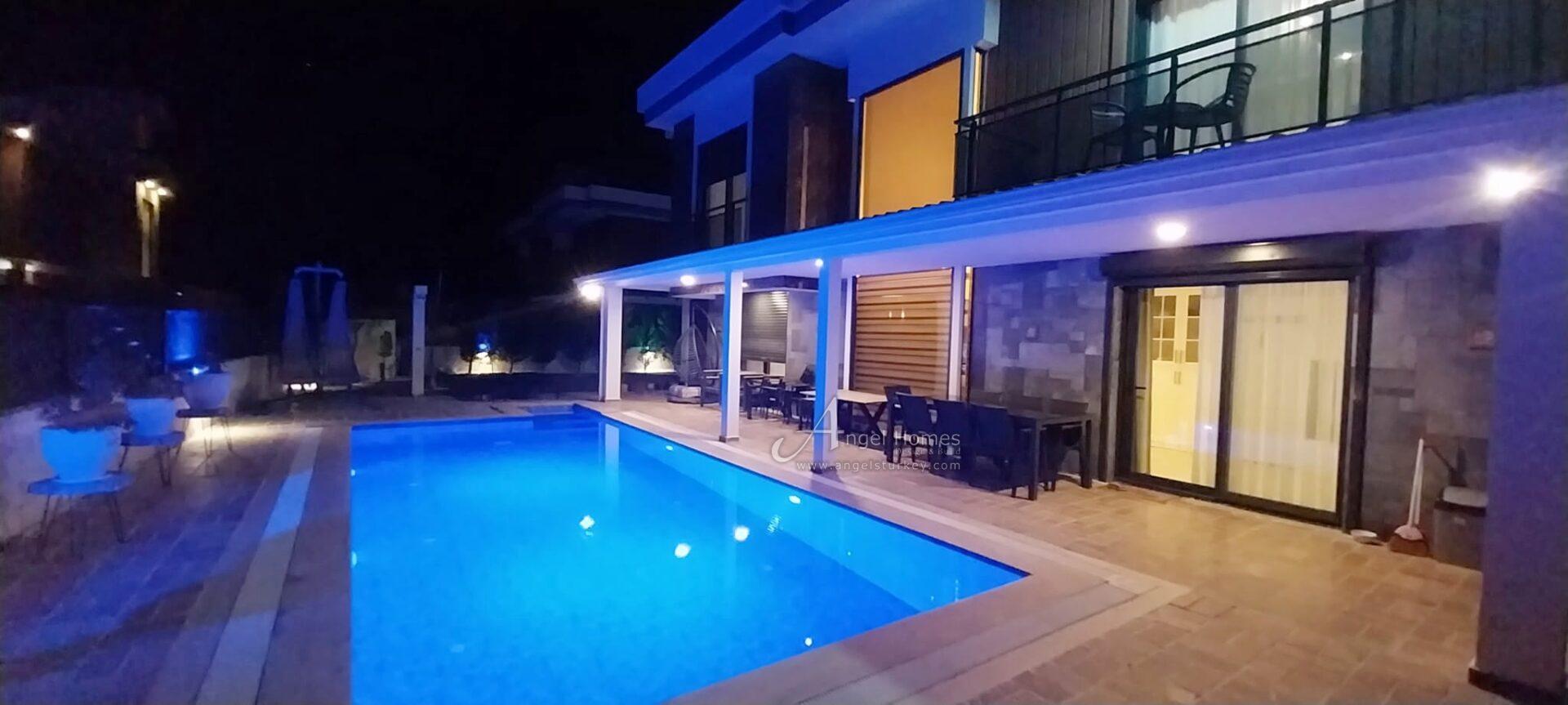 This spacious 4-bed villa in Kargi (near Çalış) was built recently and is the ideal choice for a holiday home or rental investment in one of the fastest-growing areas in the Fethiye region. Built on a 500 m² private, walled and gated plot with a pool and parking, the property comes with all you need to move straight in, as well as being within easy walking distance of the seafront. Call us to arrange a viewing or learn more.