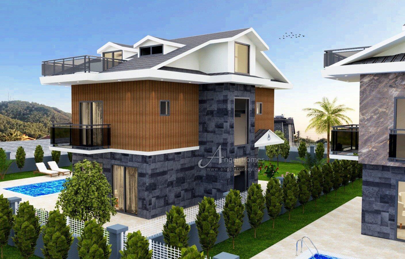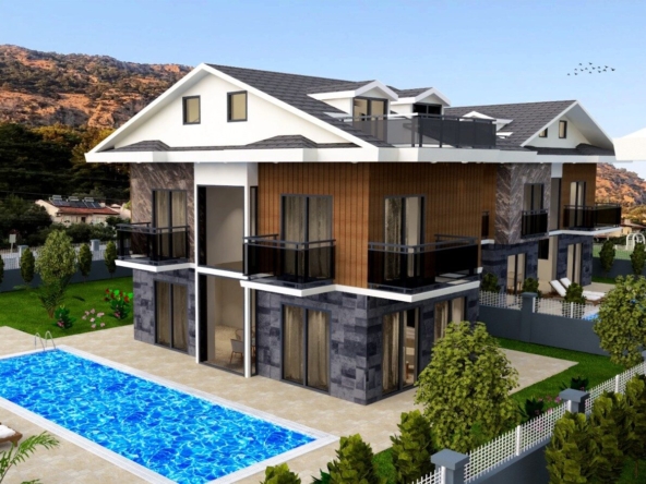 This new development of private 4-bed villas for sale in Calis offers an excellent opportunity to own a modern family-sized home or investment property in one of Fethiye’s most sought-after beach resorts. Currently under construction by an established developer known for high-quality design and craftsmanship, the project comprises three detached villas, each with its own private pool, parking, and a 345 m² plot. The villas feature a spacious 150 m² interior, spread across three floors, with underfloor heating, stylish contemporary finishes, and spacious open-plan living and entertaining areas. Conveniently located just a few minutes from Calis Beach and a short bus ride from Fethiye town, these properties are ideal for year-round living, holidays, or to attract a rental income. They are also eligible for Turkish citizenship applications.
