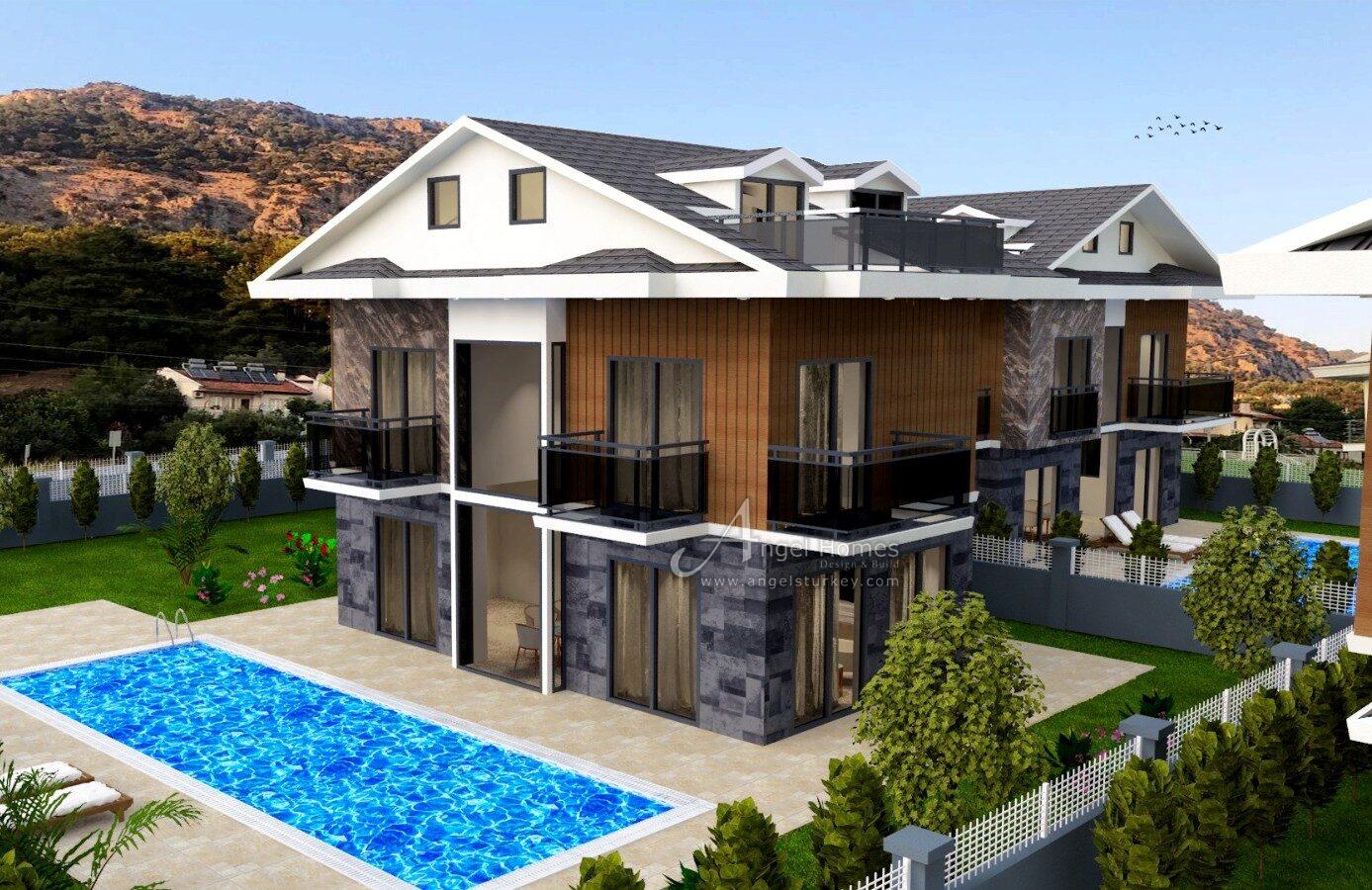 These private 4-bed villas for sale in Calis are an excellent choice for anyone looking to invest in a quality new build close to the beach. Built by a trusted local developer, there may be a chance to stamp your own style on the interior whilst construction allows. The inclusion of underfloor heating, private pools, and off-road parking adds to these villas’ year-round appeal.