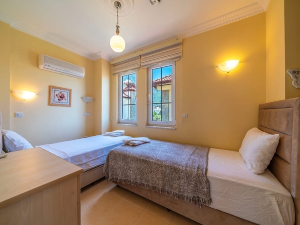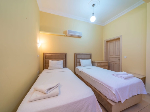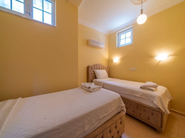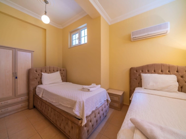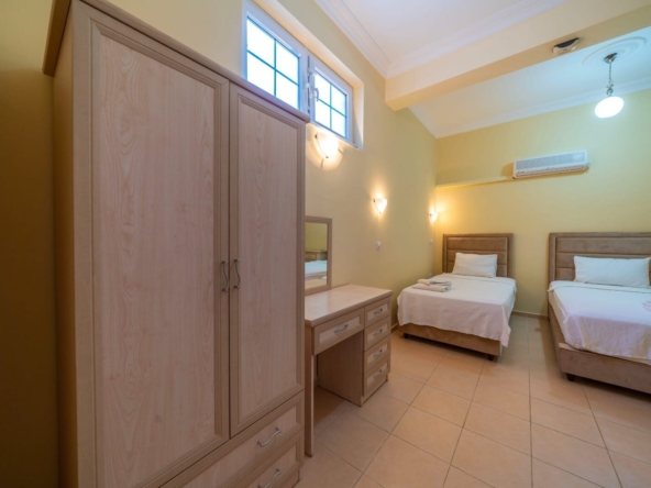 - Lower Floor: 2 bedrooms with twin beds, wardrobes, dressing tables, air conditioning, and private en-suite bathrooms.