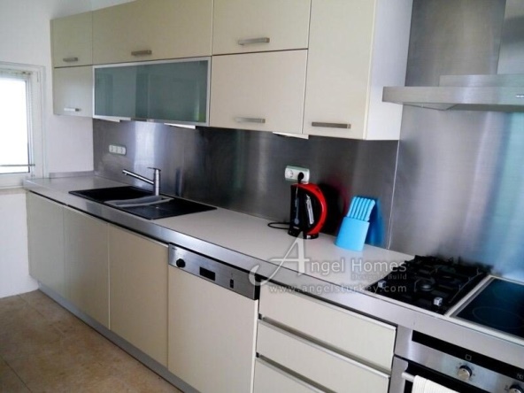 Facing south-east this unique property offers 150m2 of living space, has a fully renovated modern kitchen with light units and 2 bedrooms, both with en-suites. One of the bedrooms has it’s own private entrance with a patio area. Both bedrooms have air-conditioning, in addition the property boasts a cosy living room with an open fireplace, a dining room with scenic views and a lower level storage or exercise room.